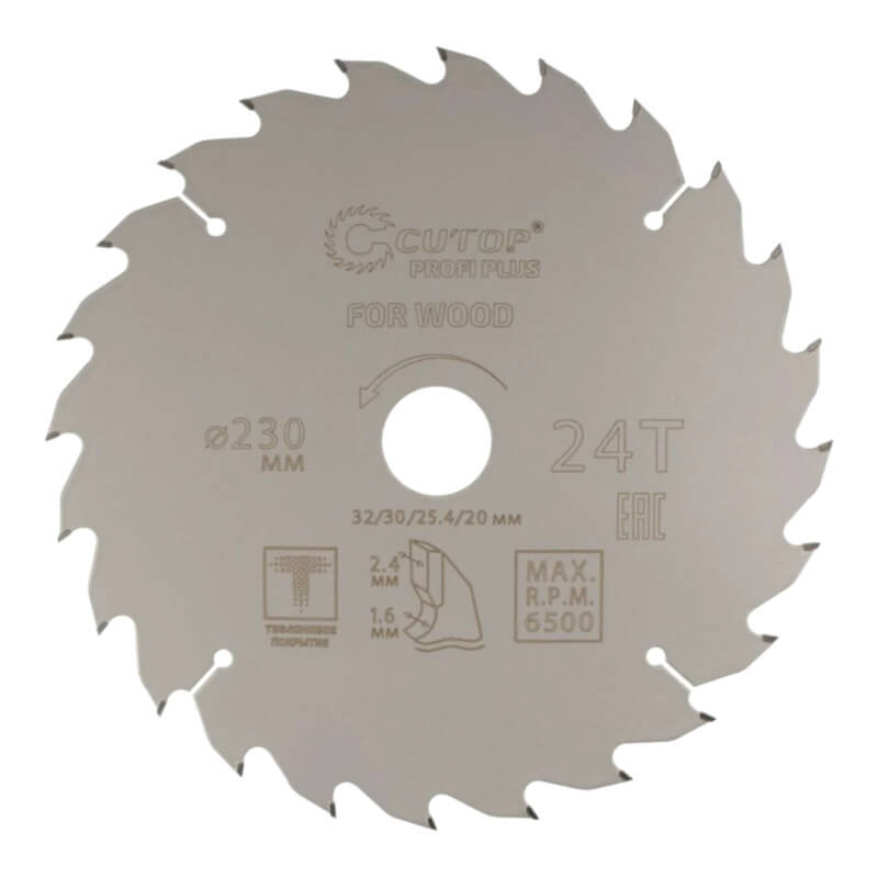 Диск пильный по дереву с тефлоновым покрытием 24Т, Cutop profi Plus, 230 х 1,6/2,4 х 32/30/25,4/20 м