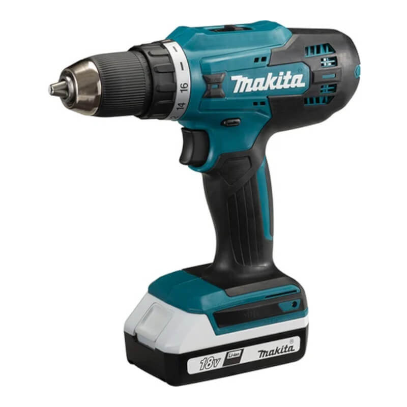 Дрель аккумуляторная Makita DF 488 DWE + подарок Makita: очки солнцезащитные + пластиковый чехол 180110 + набор удлиненных бит от известного производителя – улучшенная версия популярного 18-вольтового шуруповерта DF457, работающая с аккумуляторами G-серии. Инструменты Makita с аккумуляторами G-серии – это сочетание высокого качества и доступной цены, что делает их отличным выбором как для профессионалов, так и для домашних мастеров. Они идеально подходят для использования в строительстве, ремонте, небольшом производстве, домашней мастерской или гараже. Эта модель оснащена мощным двигателем, двухскоростным редуктором и муфтой регулировки крутящего момента с 16 положениями и режимом сверления. Среди преимуществ – обновленный эргономичный дизайн. Шуруповерт отлично сбалансирован и имеет увеличенную площадь обрезиненных поверхностей, предотвращающих скольжение. Новый переключатель скорости редуктора обеспечивает четкую фиксацию, а удобно расположенный реверс позволяет комфортно работать одной рукой на высоте или