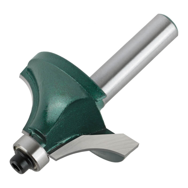 Фреза кромочная калевочная с нижним подшипником dxhxl = 38,1x17x54 мм FIT применяется при работах по дереву для скругления кромок и выполнения орнаментов. Совместима с фрезерными станками, крепится при помощи цилиндрического хвостовика 8 мм. Фреза выполнена из термообработанной инструментальной стали, рабочая часть оснащена твердосплавными режущими пластинами. Диаметр фрезы составляет 38,1 мм.