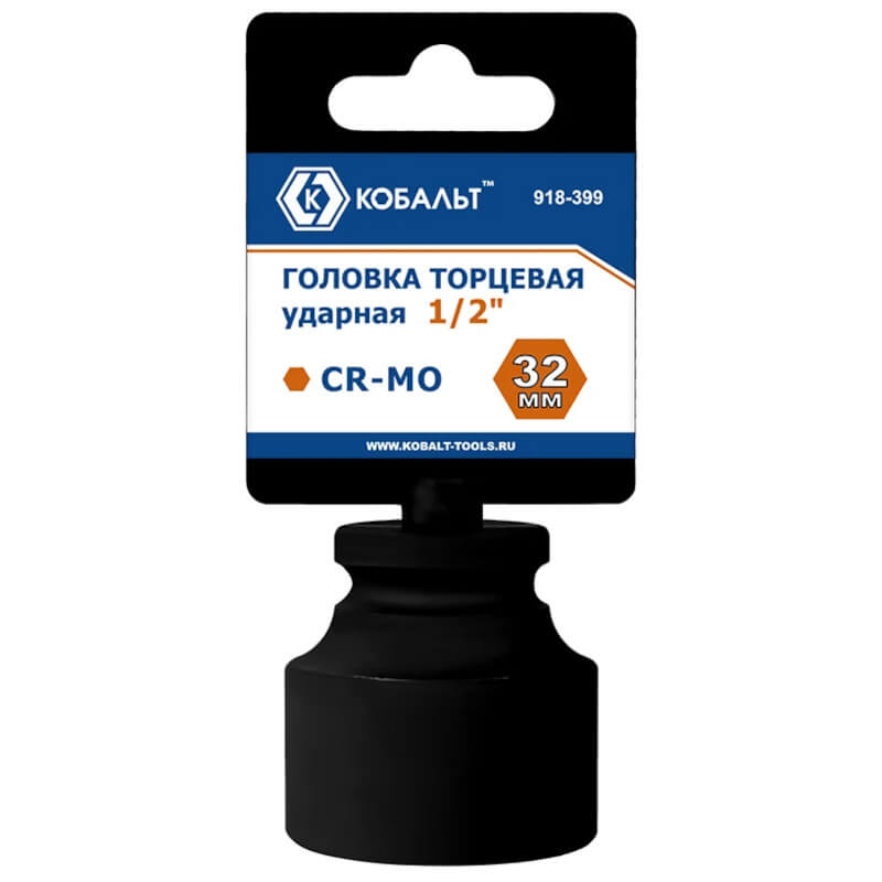 Головка торцевая глубокая ударная КОБАЛЬТ 1/2″, 32 мм, Cr-Mo (1 шт.) подвес 918-429