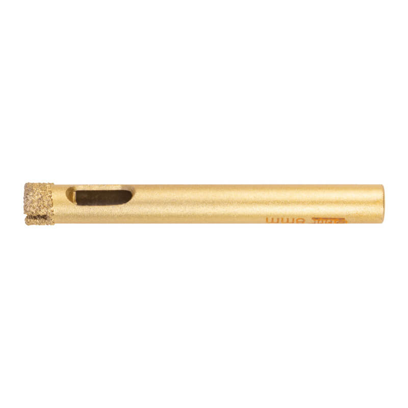 Алмазная коронка используется для вырезания отверстия в стекле, керамограните и керамической плитке. Метод вакуумного спекания позволяет наносить технические алмазы послойно. Благодаря этой технологии износ режущего слоя происходит не сразу, а фрагментами. Долговечность и качество обрабатываемой поверхности также обеспечивают покрытие корпуса и специальные технологические отверстия для выброса обработанного материала. Диаметр получаемого отверстия 8 мм, глубина 35 мм, при общей длине корпуса 65мм. Коронка для влажного сверления, используйте жидкость или СОЖ!