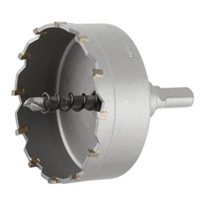 Кольцевая коронка применяется для просверливания нержавеющей стали, алюминия и латуни. Цельнолитой корпус из инструментальной стали очень крепкий, а карбидные накладки из твёрдого сплава позволяют коронке буквально вгрызаться в материал и проделывать точные отверстия. Цилиндрический хвостовик с гранями обеспечивает хороший ухват. Коронка не проскальзывает в патроне. Центрирующее сверло не даёт коронке соскакивать. Диаметр отверстия 70 мм.