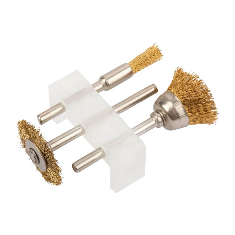Корщетки латунированные, набор 3 шт FIT 36904 представляют собой сменную оснастку для гравировальной машинки. С их помощью удаляют остатки старого покрытия с поверхностей и следы ржавчины. Диаметр хвостовика составляет 3,1 мм. Рабочая часть изготовлена из латунированной проволоки.