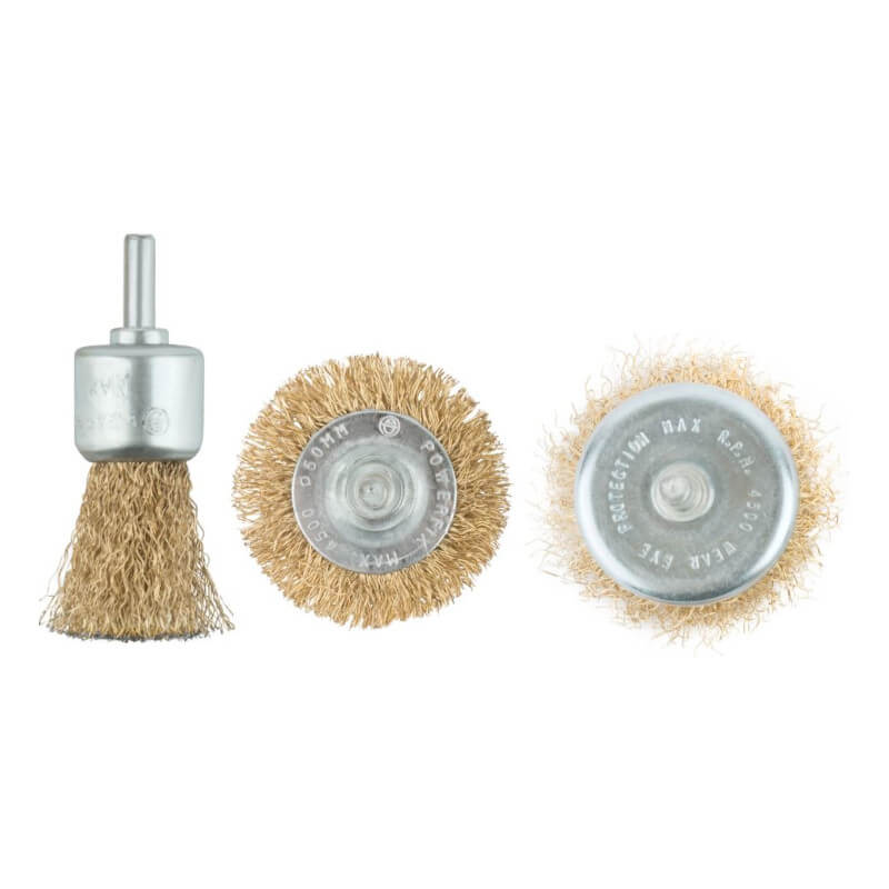 Корщетки со штифтом, набор 3 шт. (колесо 50 мм / чашка 50 мм / венчик 25 мм)