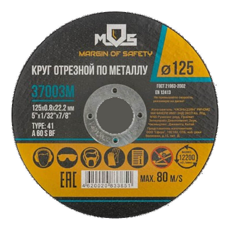 Круг отрезной по металлу mos, посадочный диаметр 22,2 мм, 125х0,8 мм MOS 37003М