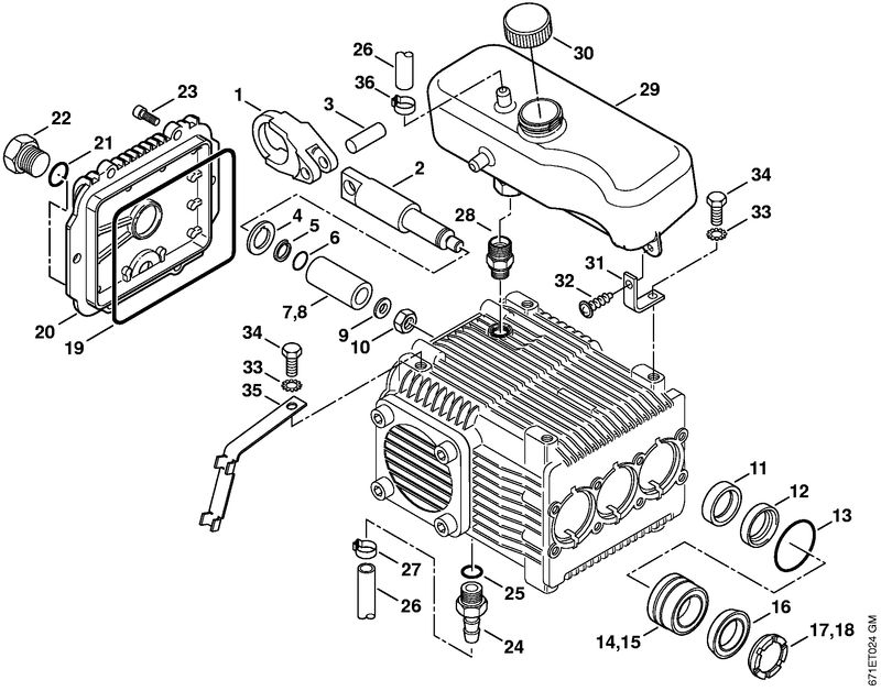 Современный набор опорных колец Штиль для ремонта и То насоса, поршня RE 361, RE 361 PLUS (артикул 4747-007-1052) — это качественные оригинальные запчасти бренда Штиль. На рисунке — номера 17-18.