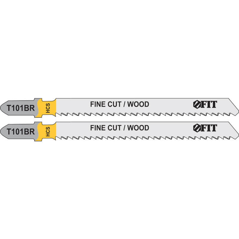 Набор FIT 40949 включает в себя 2 полотна для электрического лобзика модели T101BR. При общей длине полотна 100 мм, длина рабочей части составляет 74 мм, остальное пространство занимает Т-образный хвостовик. Шаг зубьев в 4 мм позволяет быстро пилить древесину и плиты ДСП и МДФ толщиной от 3 до 30 мм. Высокоуглеродистая сталь марки CSS делает полотно гибким, а закалка придаёт твёрдости в диапазоне от 50 до 52 HRC.