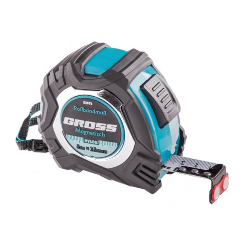 Рулетка GROSS Magnetis, 8 м x 25 мм, нейлоновое покрытие, магнит
