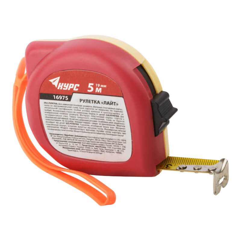Рулетка пластиковая 2-х цветная «Лайт» 5 м x 19 мм двухцветный ABS противоударный корпус FIT предназначена для линейных замеров расстояний до 5 м. Измерительная лента изготовлена из стали, благодаря чему не деформируется. Двухцветный корпус изготовлен из ударопрочного пластика и защищен от повреждений при падении с высоты. Клипса для крепления на ремень позволяет держать инструмент под рукой.