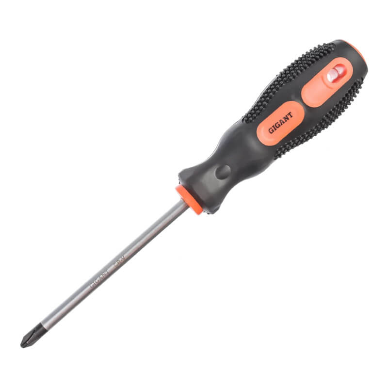 Отвертка Gigant PH2x100 с магнитным наконечником GS PH2100 предназначена для монтажа и демонтажа крепежа. Длина стержня составляет 100 мм, диаметр — 6 мм. Стержень изготовлен из хромованадиевой стали, которая отличается прочностью, износоустойчивостью, долговечностью и стойкостью к коррозии. Эргономичная рукоятка выполнена из двухкомпонентного материала, для надежного захвата и снижения нагрузки на руку. Отвертка с магнитным наконечником облегчает работу с небольшим крепежом, так как надежно фиксируется и не проскальзывает в пазу.
