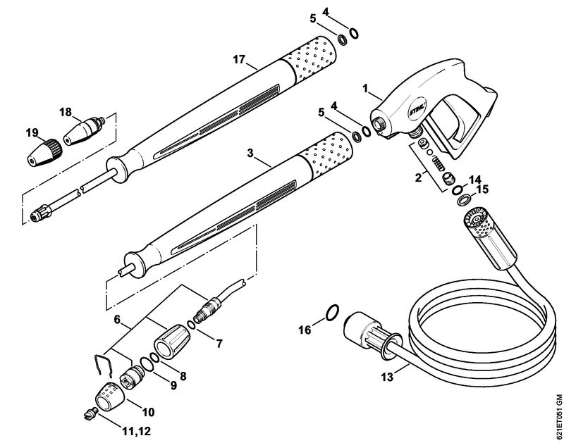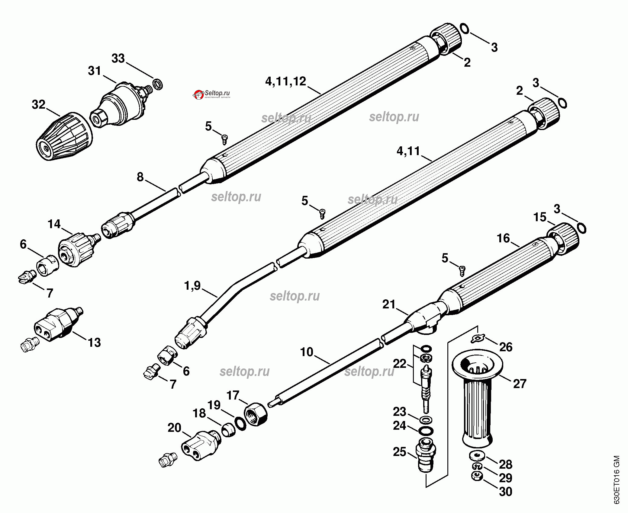 Струйная трубка Stihl 840 мм, согнутая под углом (артикул 4925-500-0945) — качественные запчасти бренда Штиль. Предназначена для пистолета-распылителя RE 160K. На рис. 4 — 10.
