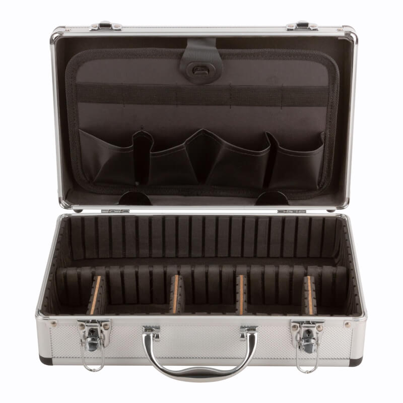 Ящик для инструмента алюминиевый 330х210х90 мм FIT обеспечивает удобное хранение инструментов и комфортную транспортировку. Алюминиевый корпус устойчив к ударам и коррозии, а внутренняя обшивка из пористого мягкого материала исключает повреждение инструментов. Переставные перегородки позволяют организовать наполнение ящика для инструментов в соответствии с индивидуальными потребностями. Металлические замки закрываются на ключ, что исключает случайное открытие чемодана для инструментов.